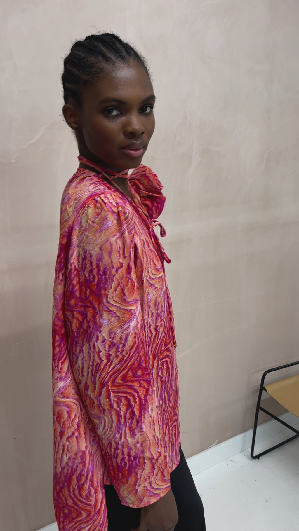 The second edition of our best selling IMPERO BLOUSE. Add a touch of elegance to any outfit with IMPERO 2 BLOUSE RED. Featuring a stylish printed pattern and three detachable flowers that can be pinned to anywhere on the blouse, this is a must-have for any fashion-forward individual.