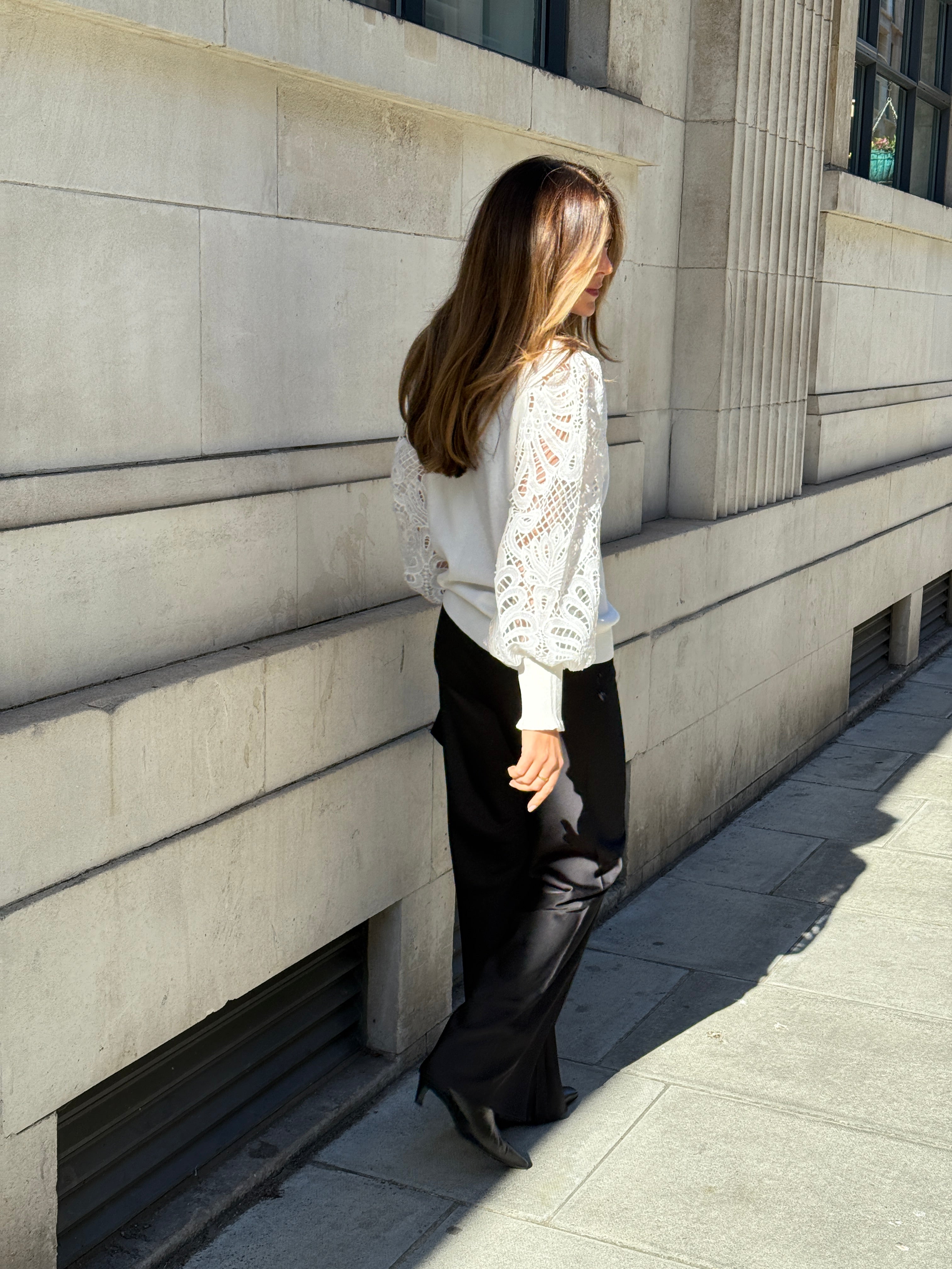 The Lorimer Jumper combines timeless elegance with subtle detailing. Crafted as an essential wardrobe staple, its refined silhouette is elevated by delicately embroidered sleeves, offering a sophisticated touch to everyday comfort. Perfect for layering or wearing solo, this jumper effortlessly blends classic style with understated charm.