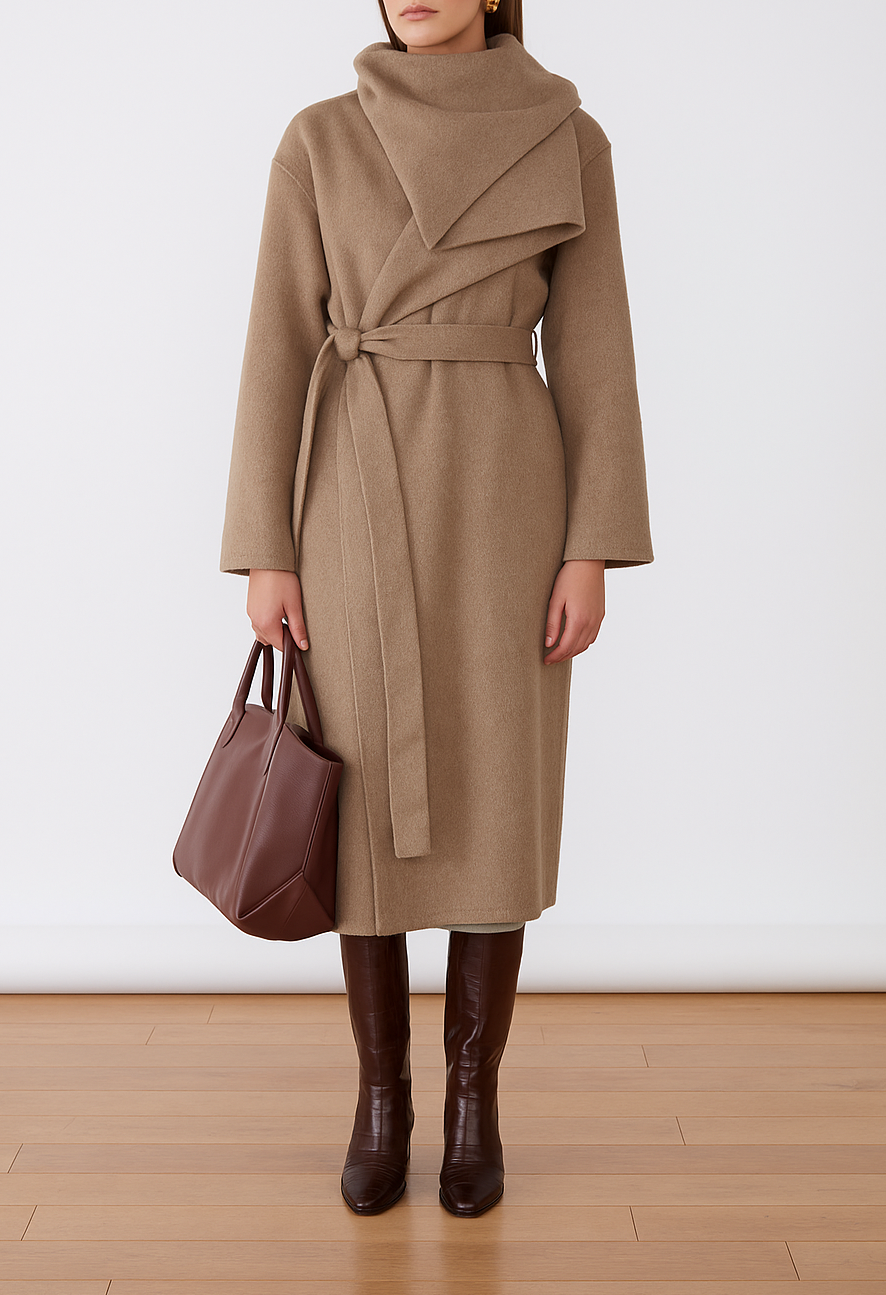 The SIFO Coat is a sophisticated winter essential crafted from 50% wool for warmth and durability. Its innovative neckline transitions seamlessly from a relaxed wrap to a structured funnel neck, offering versatile styling options to suit your mood and occasion. A cinched waist creates a refined silhouette while maintaining all-day comfort. Whether layered over tailored pieces or paired with casual basics, this coat delivers timeless elegance and practical sophistication for the modern wardrobe.