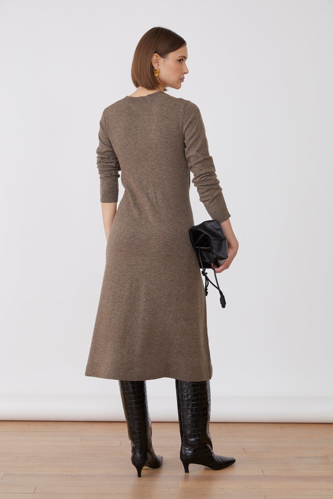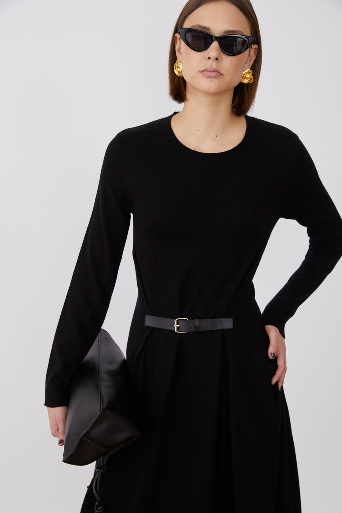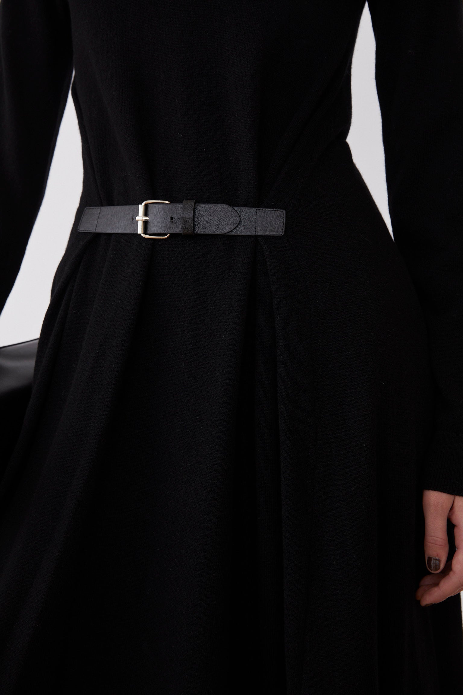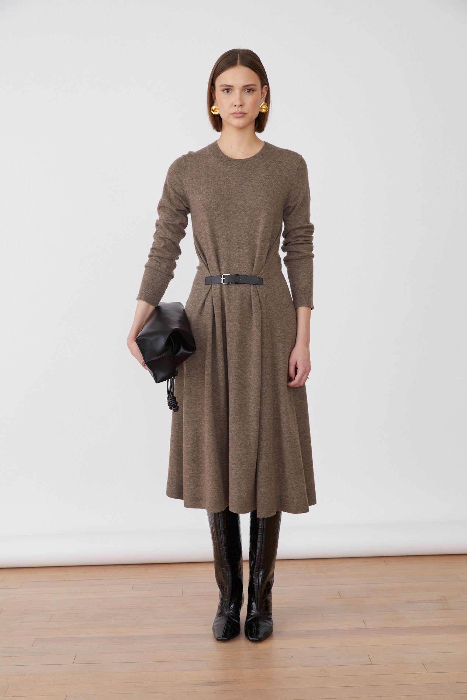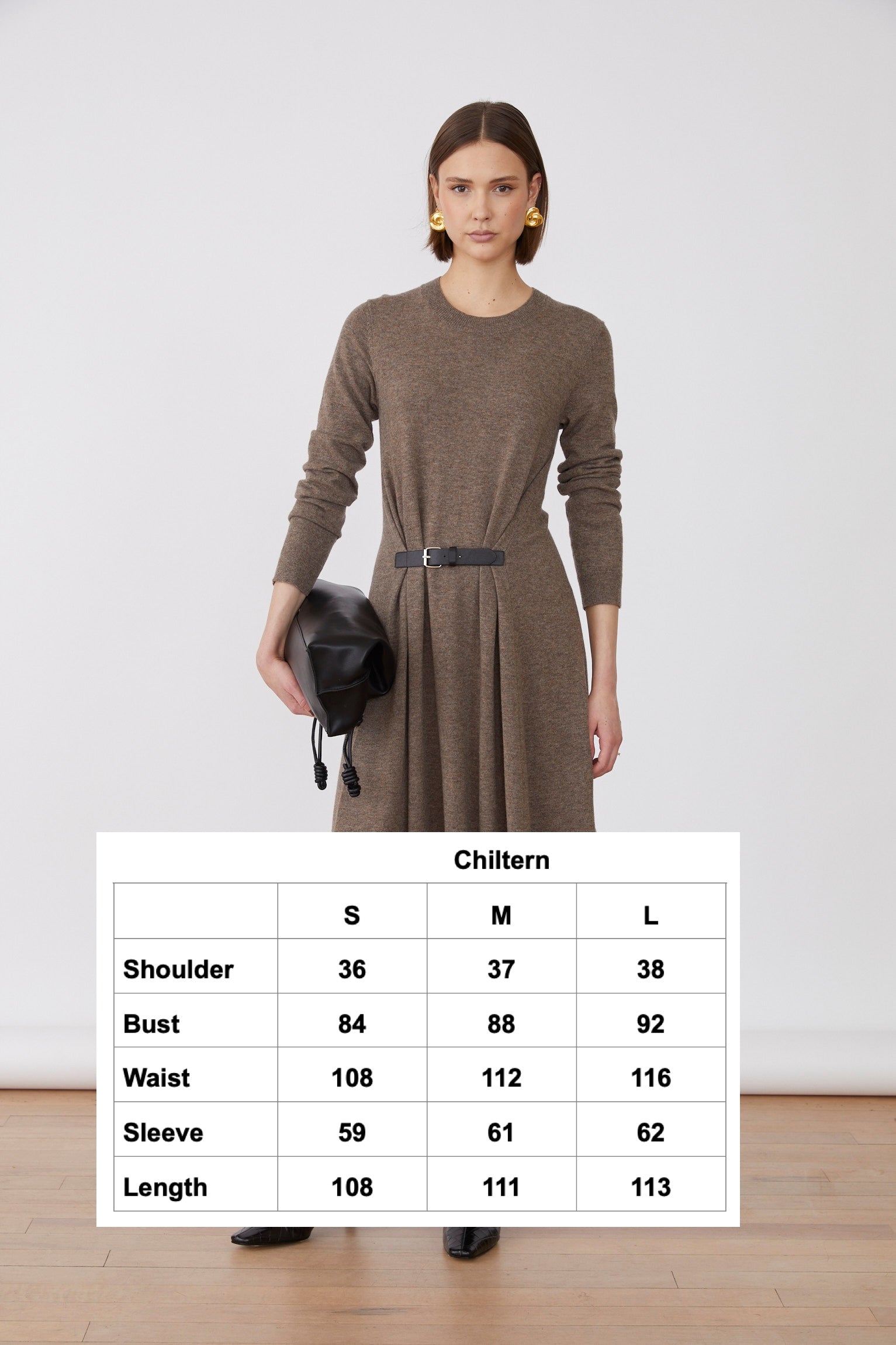 The Chiltern Knitted Dress offers a sophisticated silhouette with its long sleeves and a belt detail at the front waist that elegantly cinches to accentuate your figure. Crafted to combine comfort and style, this dress is perfect for refined occasions where subtle tailoring makes a statement.