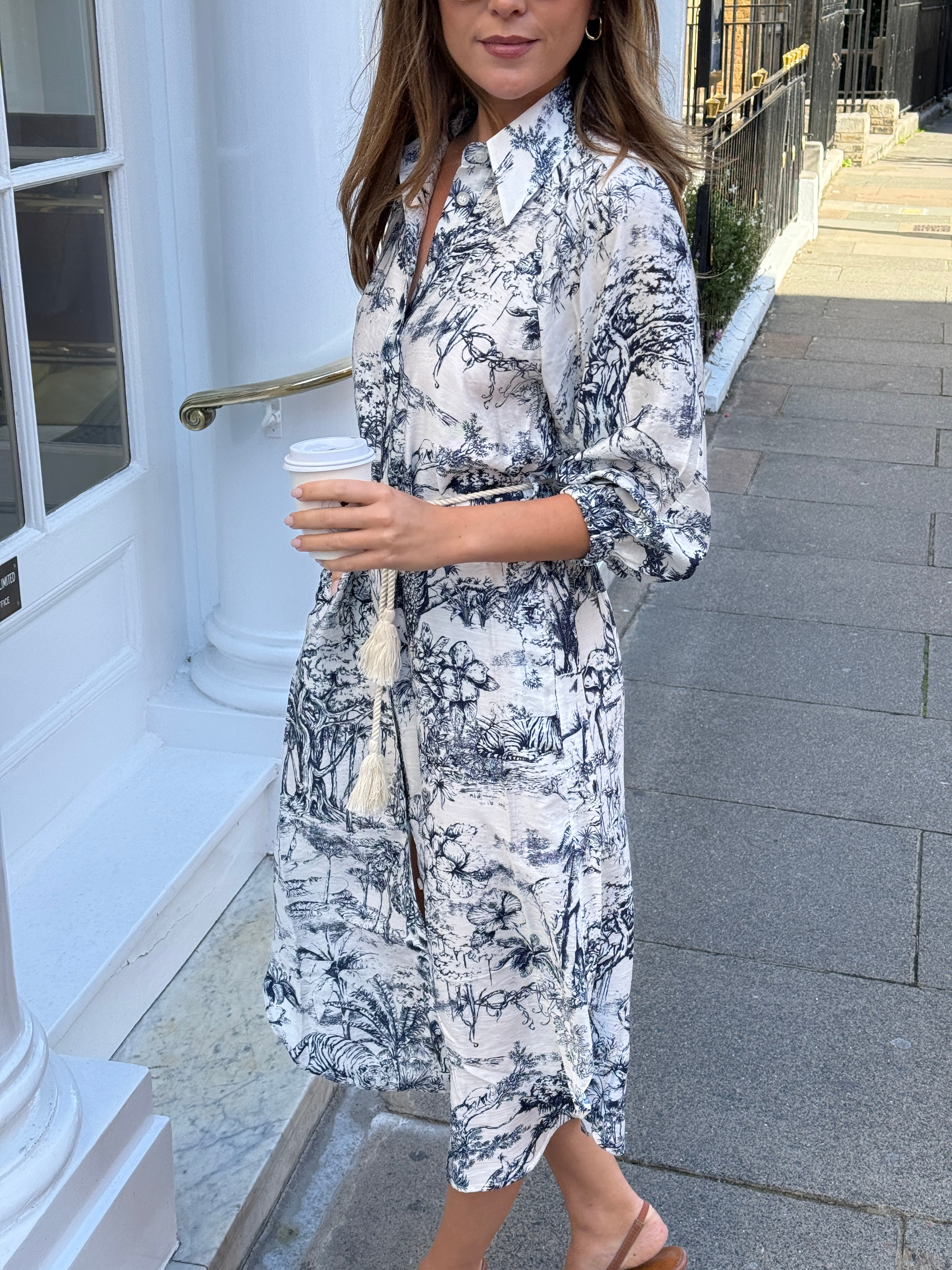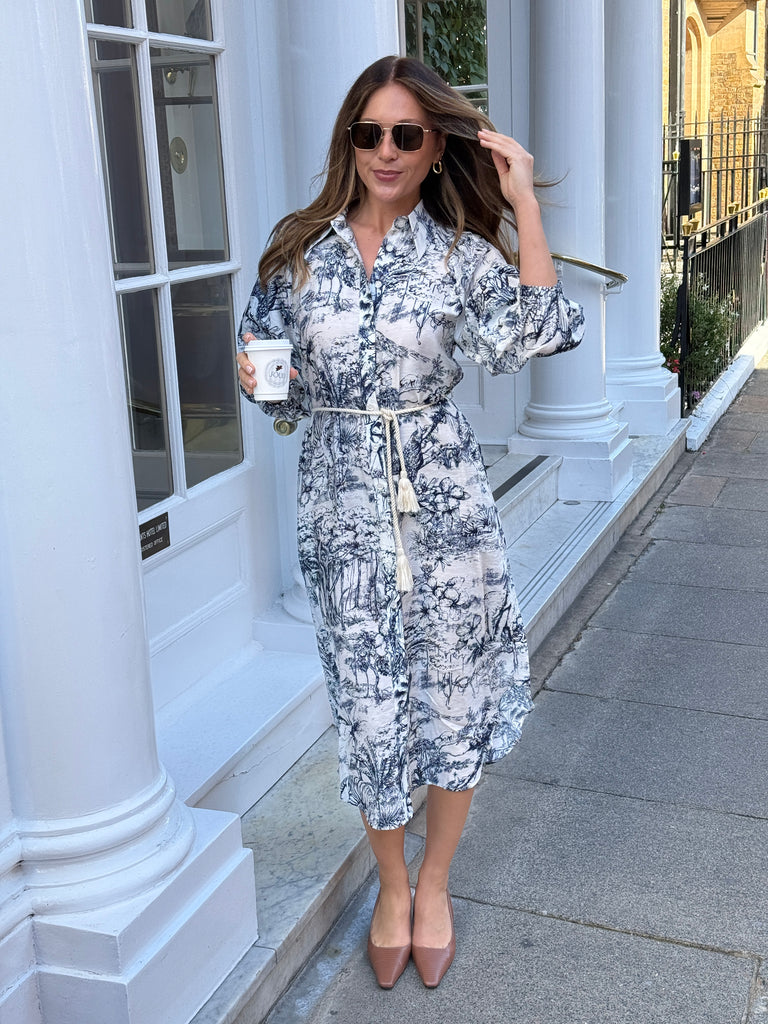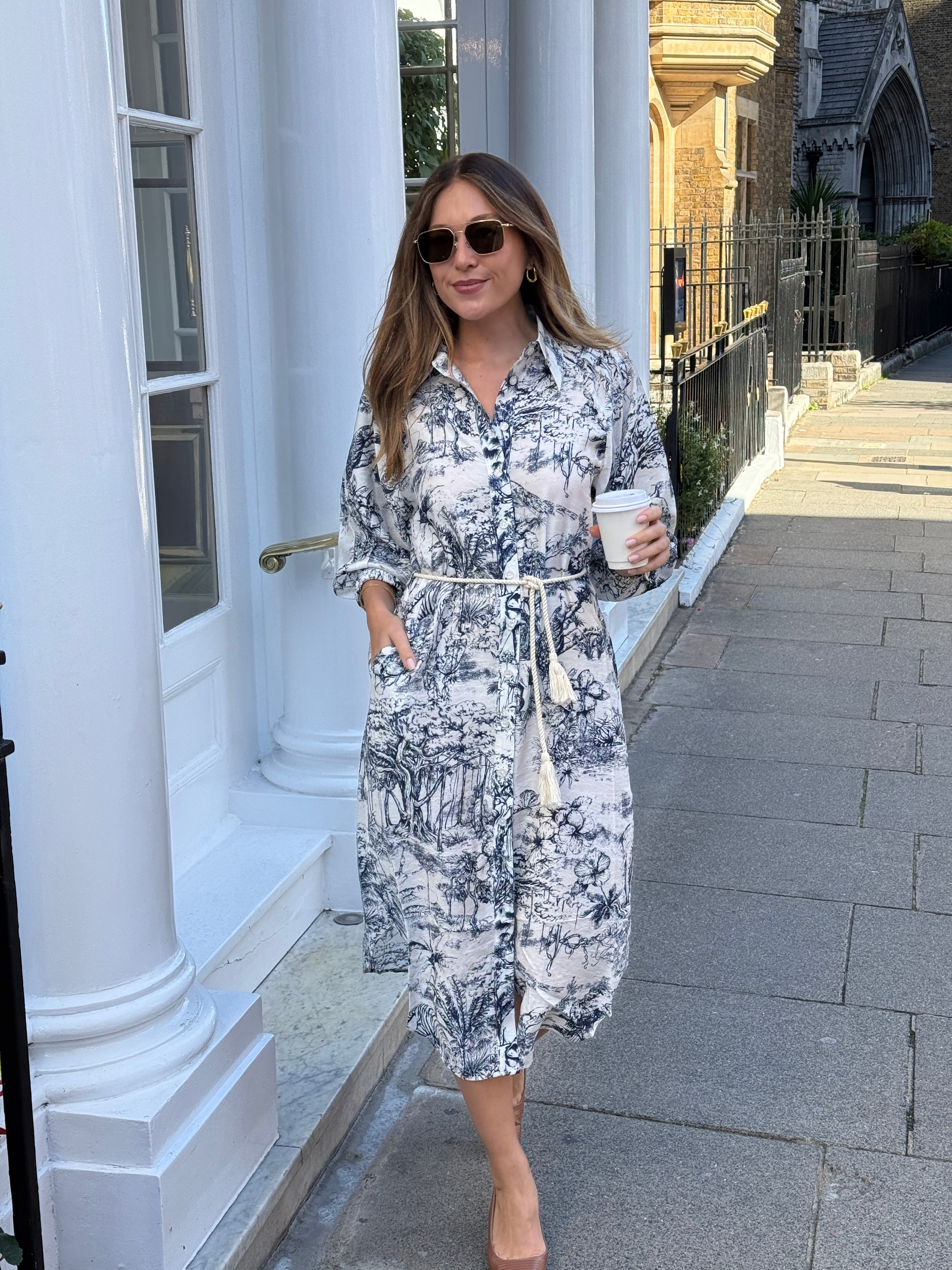 The SENECA DRESS features a vibrant red nature pattern that adds a playful touch to your wardrobe. The button down design and collar offer a classic look, while the tie waist allows for a customizable fit. Perfect for any occasion, this dress is both stylish and comfortable.
