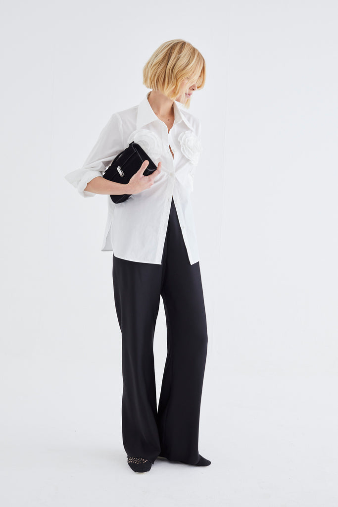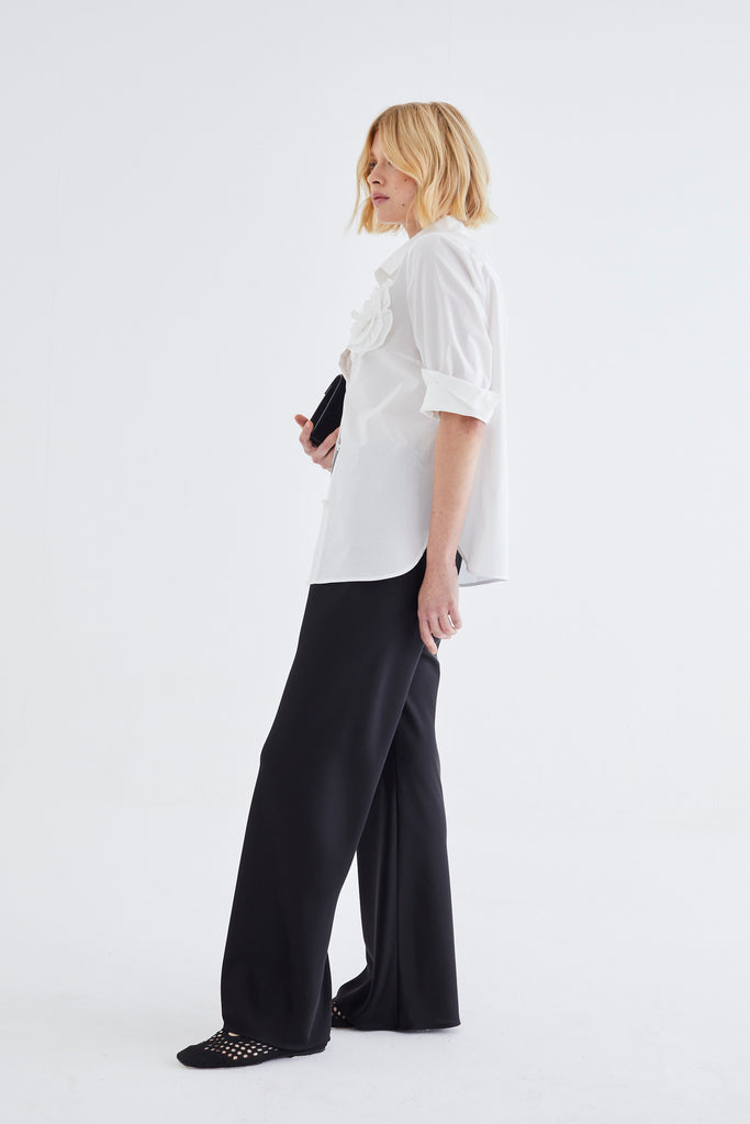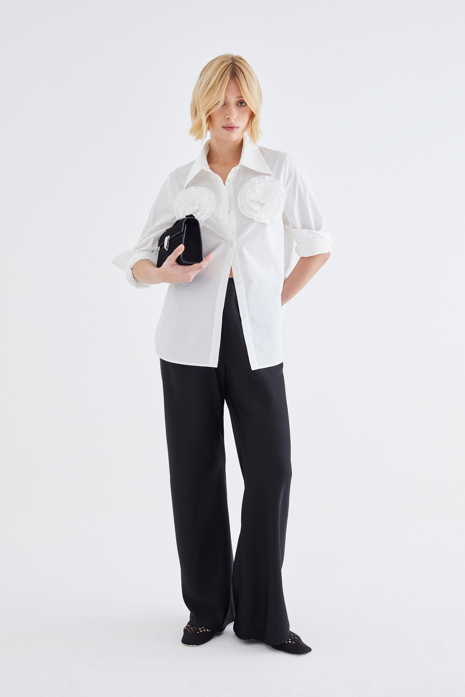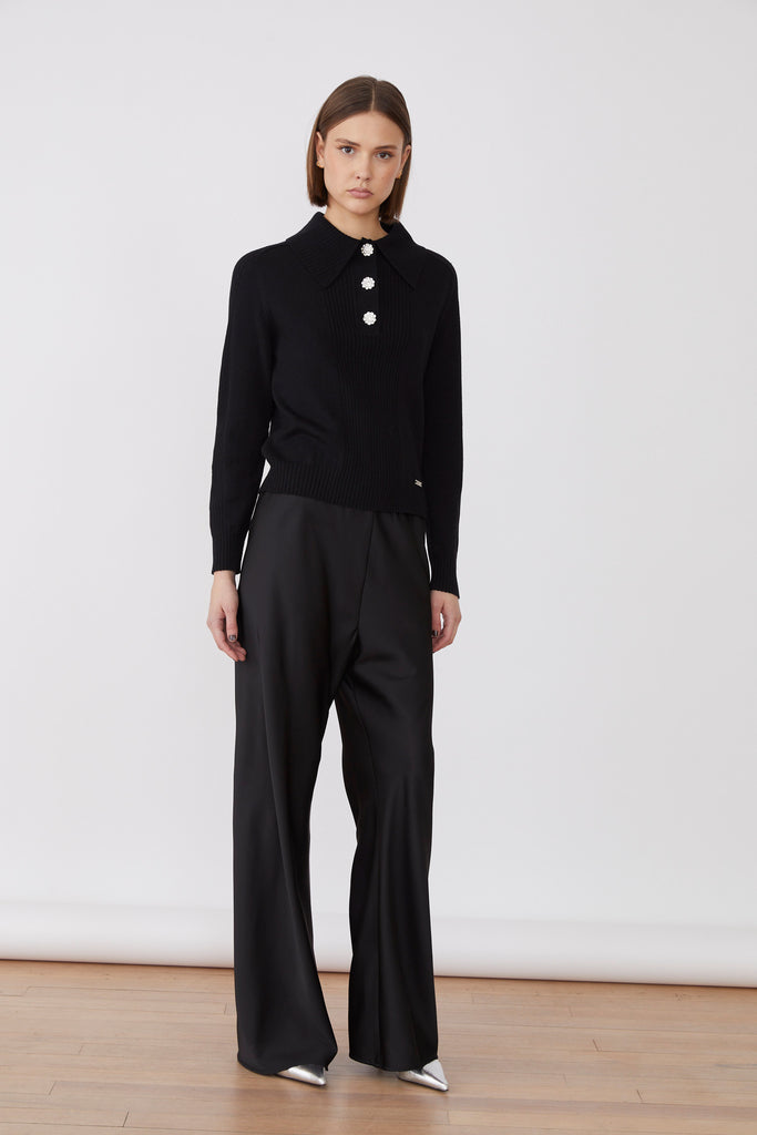 These Cabochon Trousers offer a refined take on a wardrobe essential. Crafted in a classic straight fit, their timeless black hue ensures versatility and effortless pairing with any ensemble. Ideal for professional settings or elegant casual wear, they combine comfort with understated sophistication for a polished, confident look.