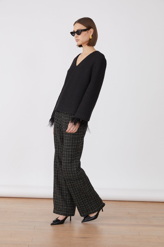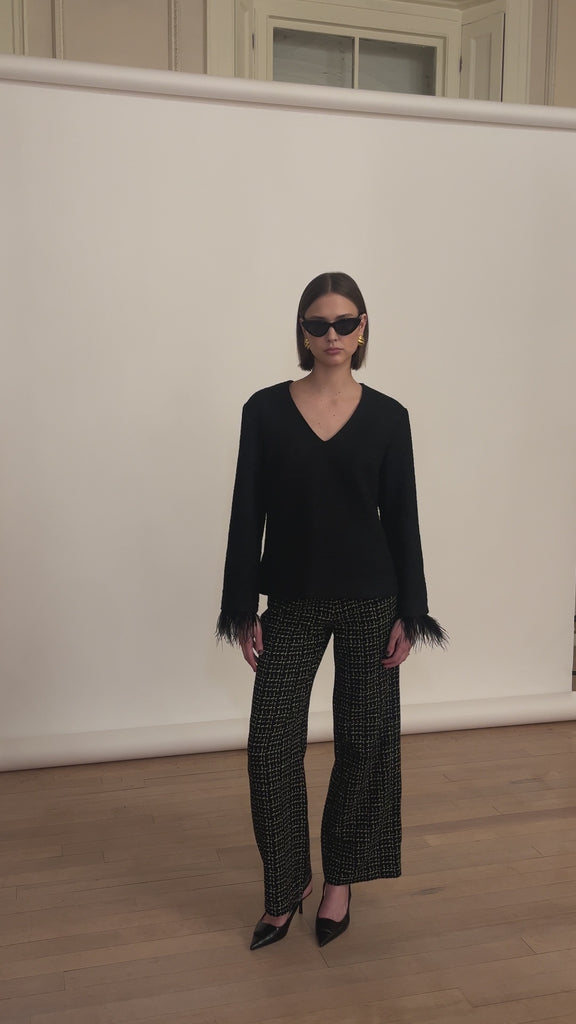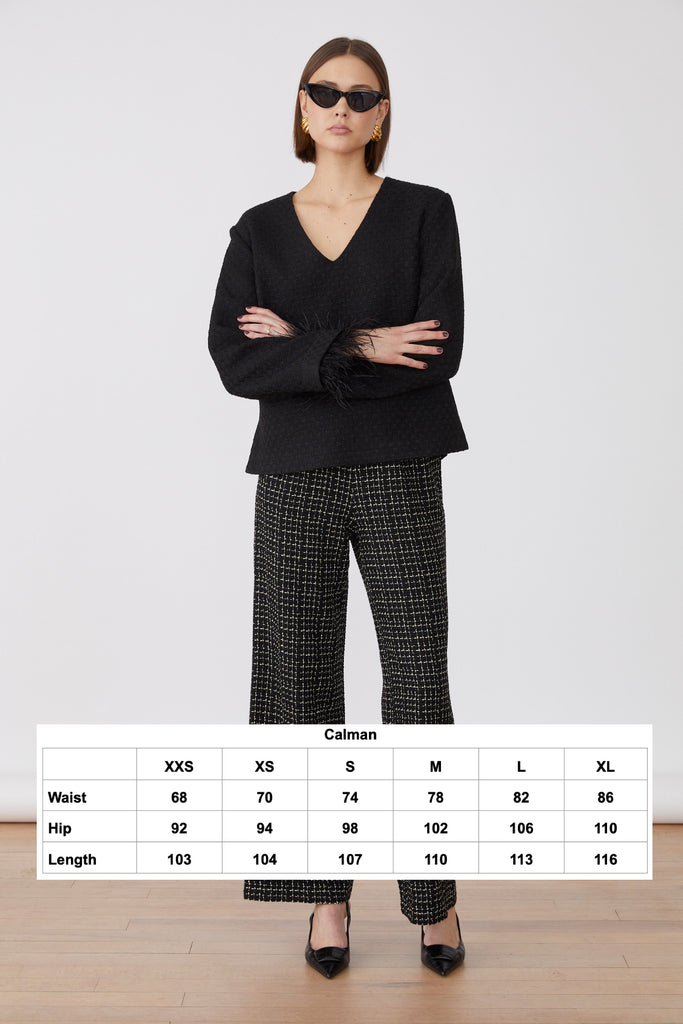 Elevate your wardrobe with the CALMAN TROUSERS, crafted in timeless tweed style fabric with a classic check pattern. These trousers blend refined tailoring with a subtle vintage charm, offering both style and comfort. Perfect for professional or elegant casual occasions, they add a sophisticated touch to any outfit while ensuring a flattering fit.