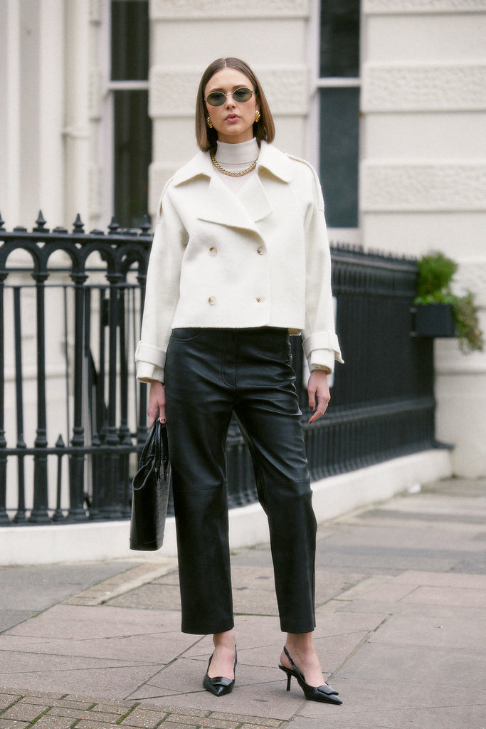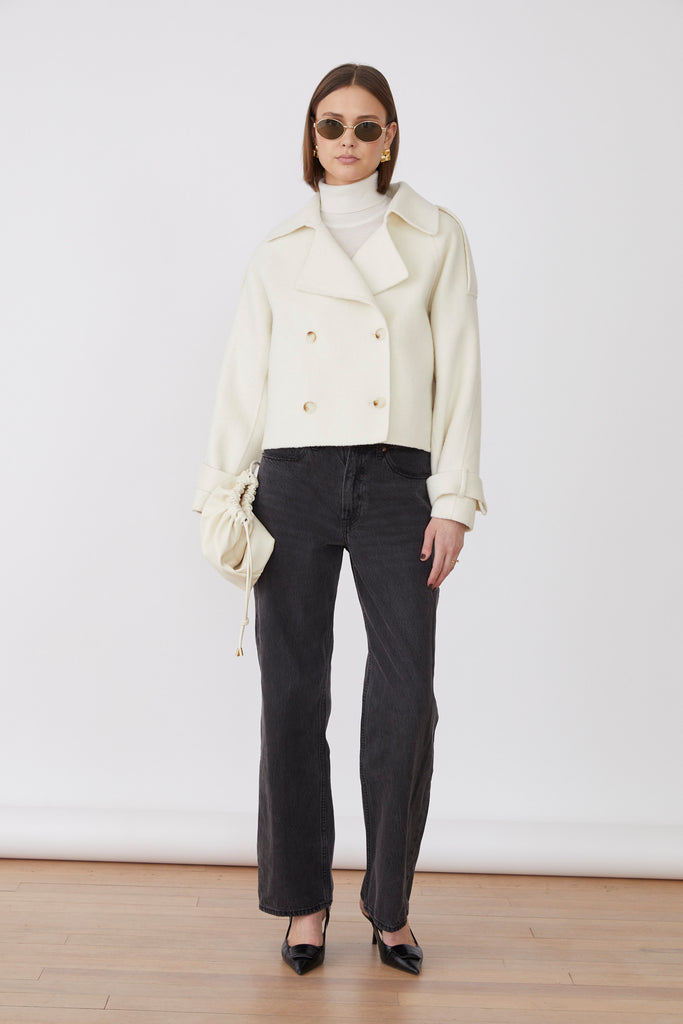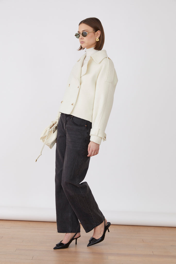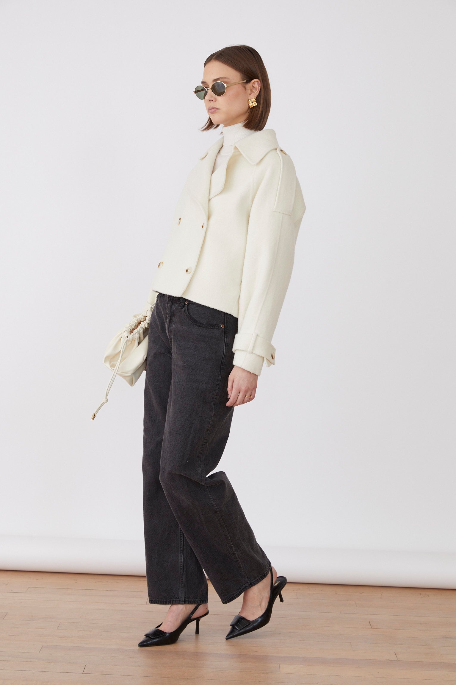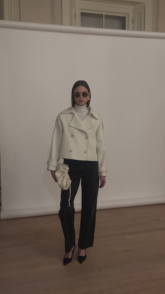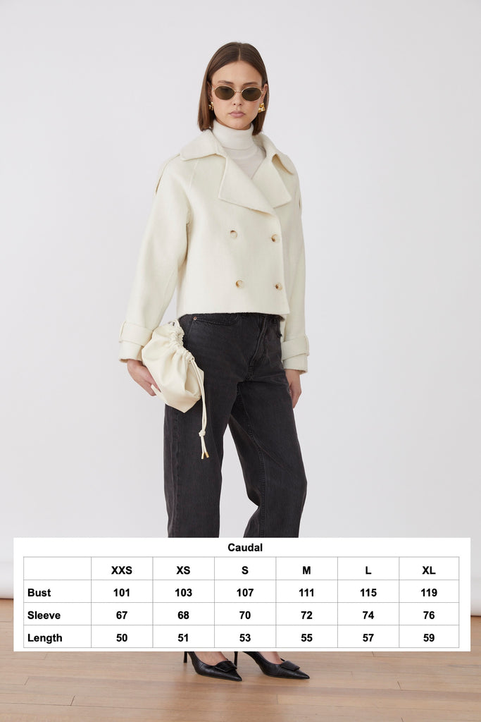 Crafted from a warm 50% wool blend, the Caudal Coat cream is a cropped jacket that adds a refined touch to any ensemble. Its elegant silhouette enhances your look while providing cozy comfort, making it the perfect choice to elevate every outfit with effortless sophistication.