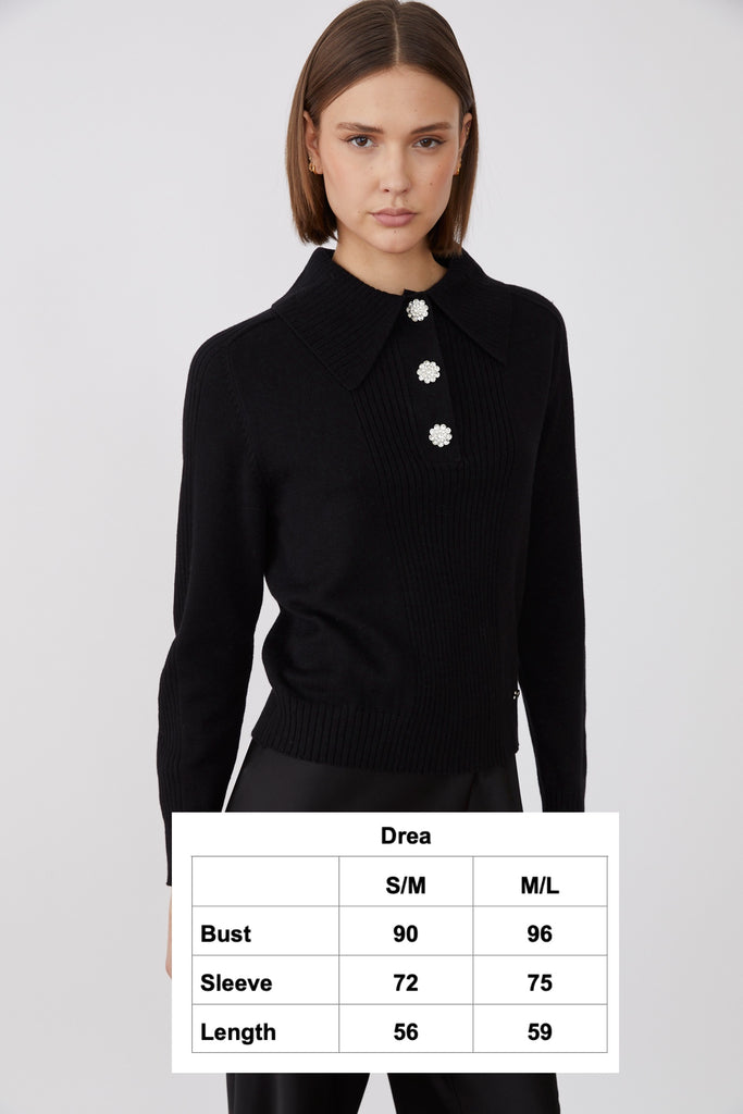 The DREA Jumper combines timeless Henly styling with elegant embellishments. Its classic silhouette is elevated by delicate flower-shaped buttons that add a refined, feminine touch. Crafted for comfort and sophistication, this jumper seamlessly blends understated charm with distinctive details, perfect for elevating your everyday wardrobe.