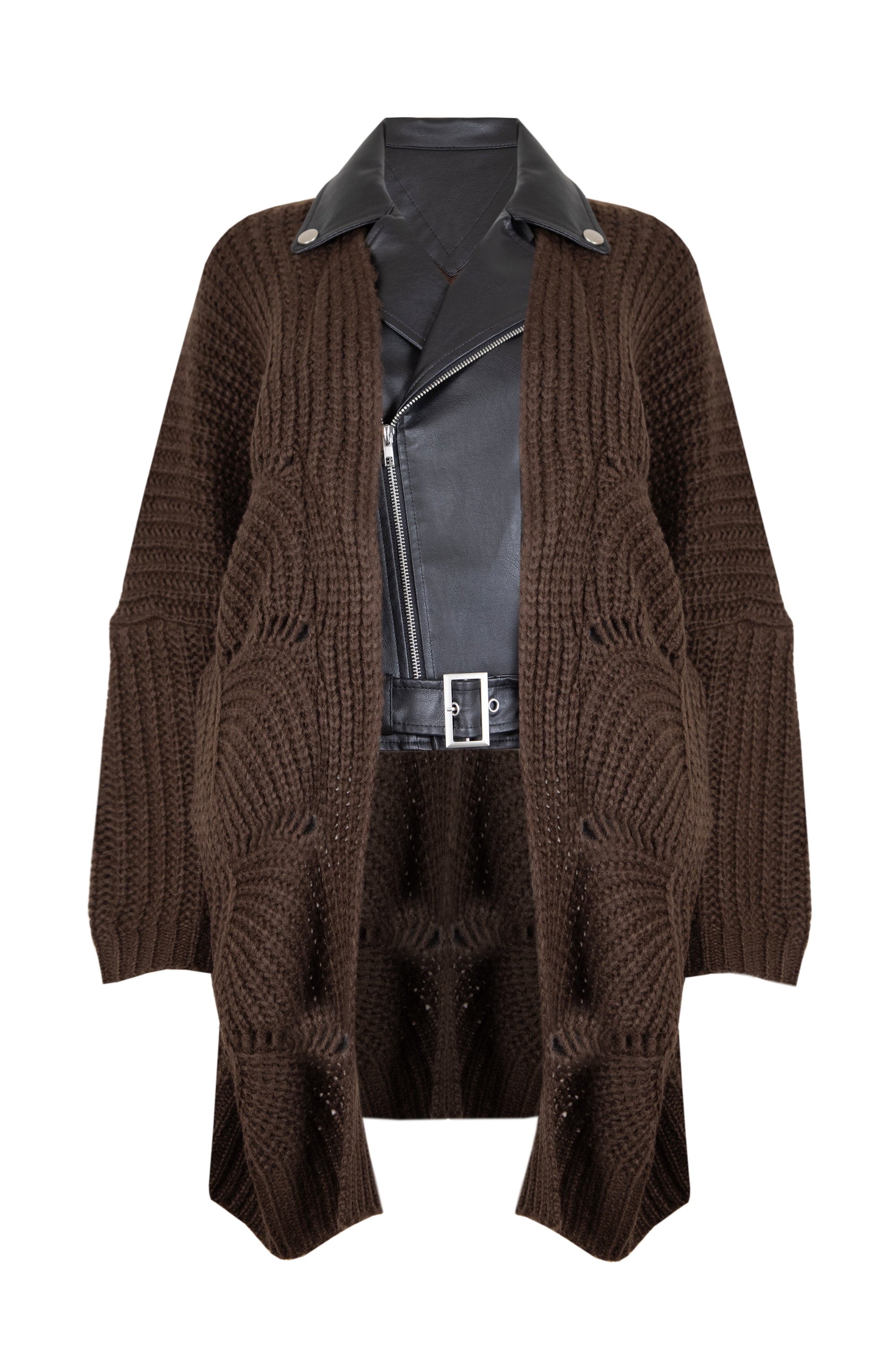 Based on our best seller WESTIN JACKET. This chunky knitted cardigan TATE JACKET is a part of our permanent collection and combines the style of a biker jacket with the comfort of a cardigan. A spliced hemline and pockets complement the olive green colourway.