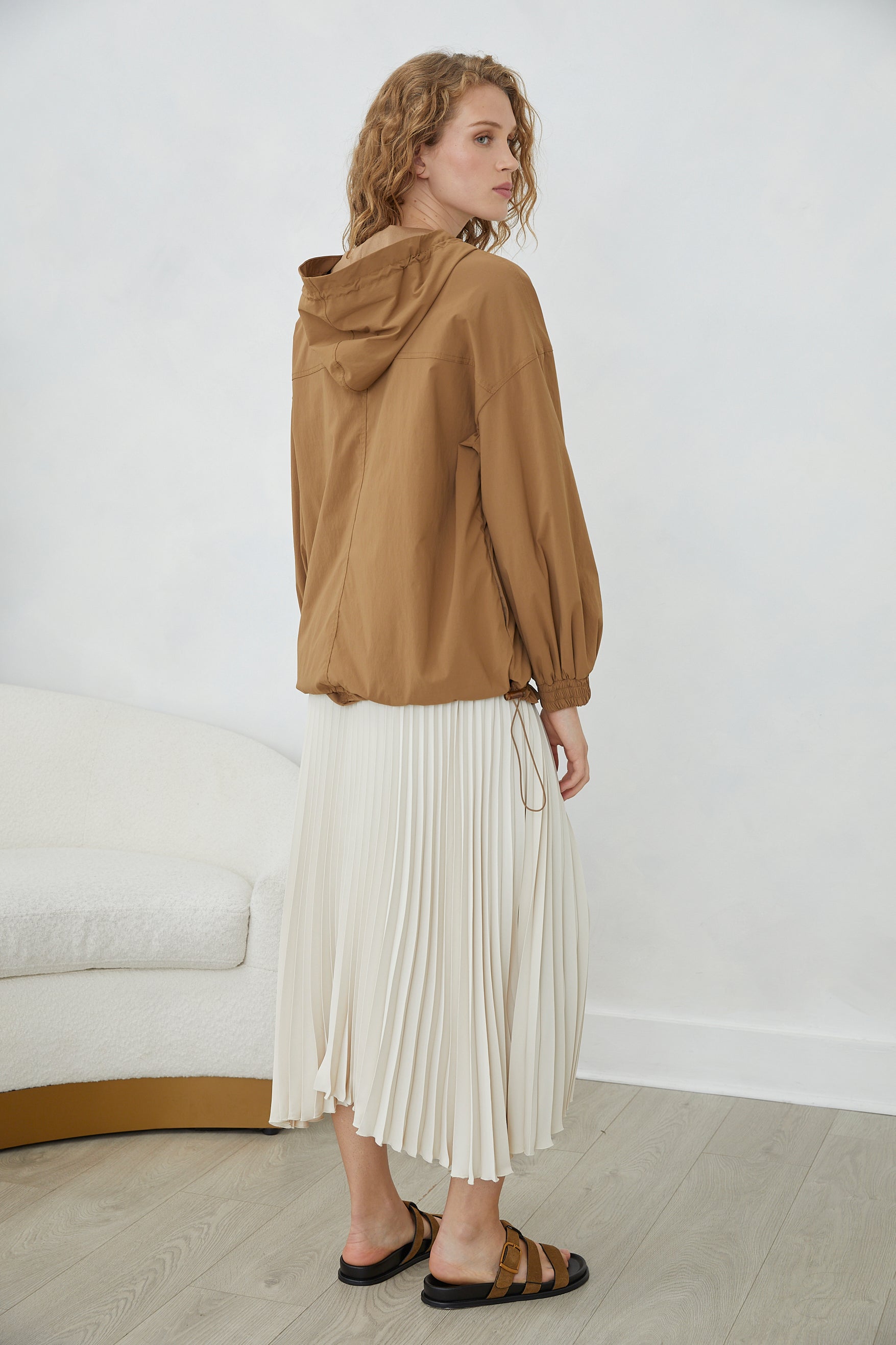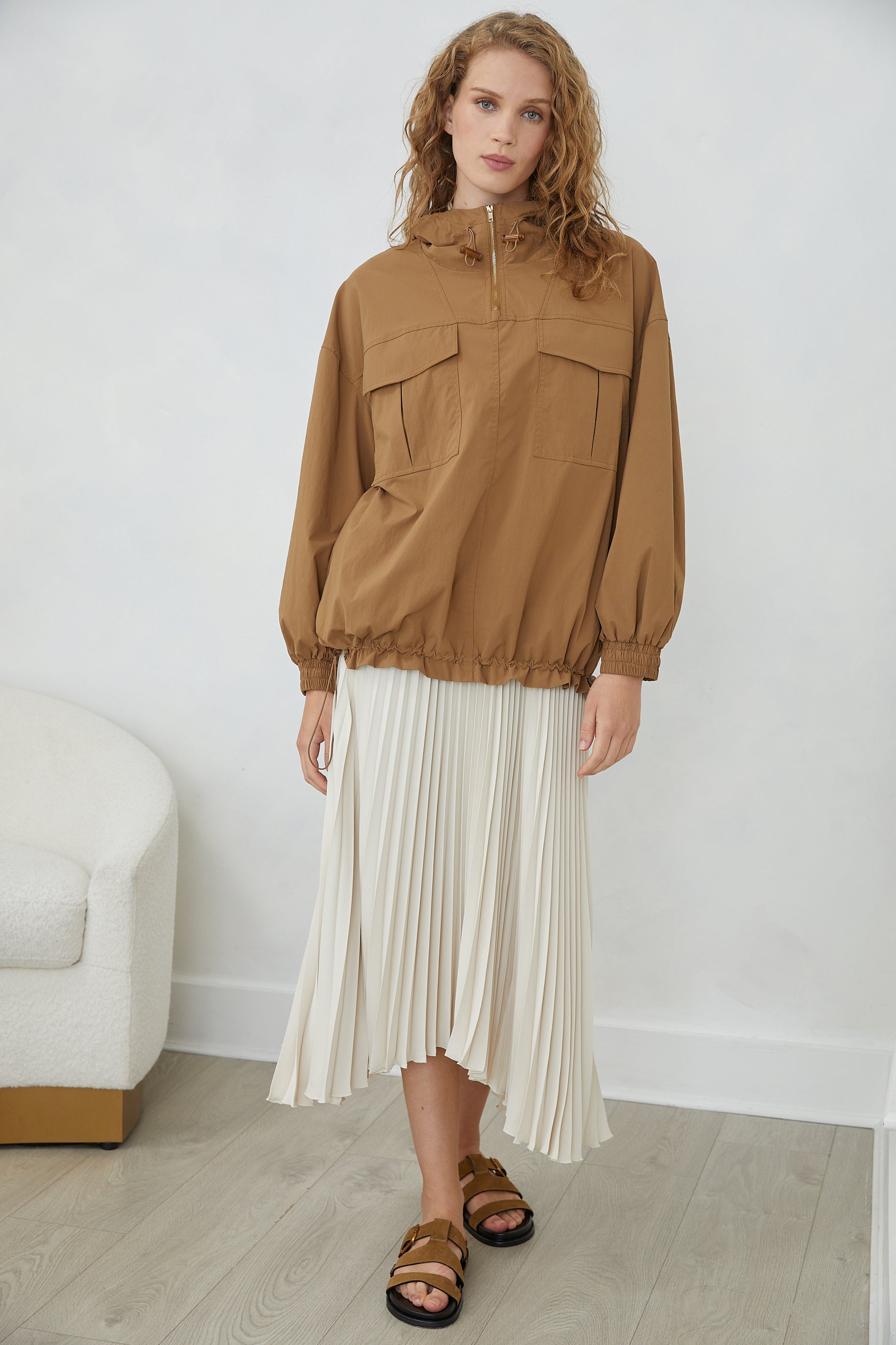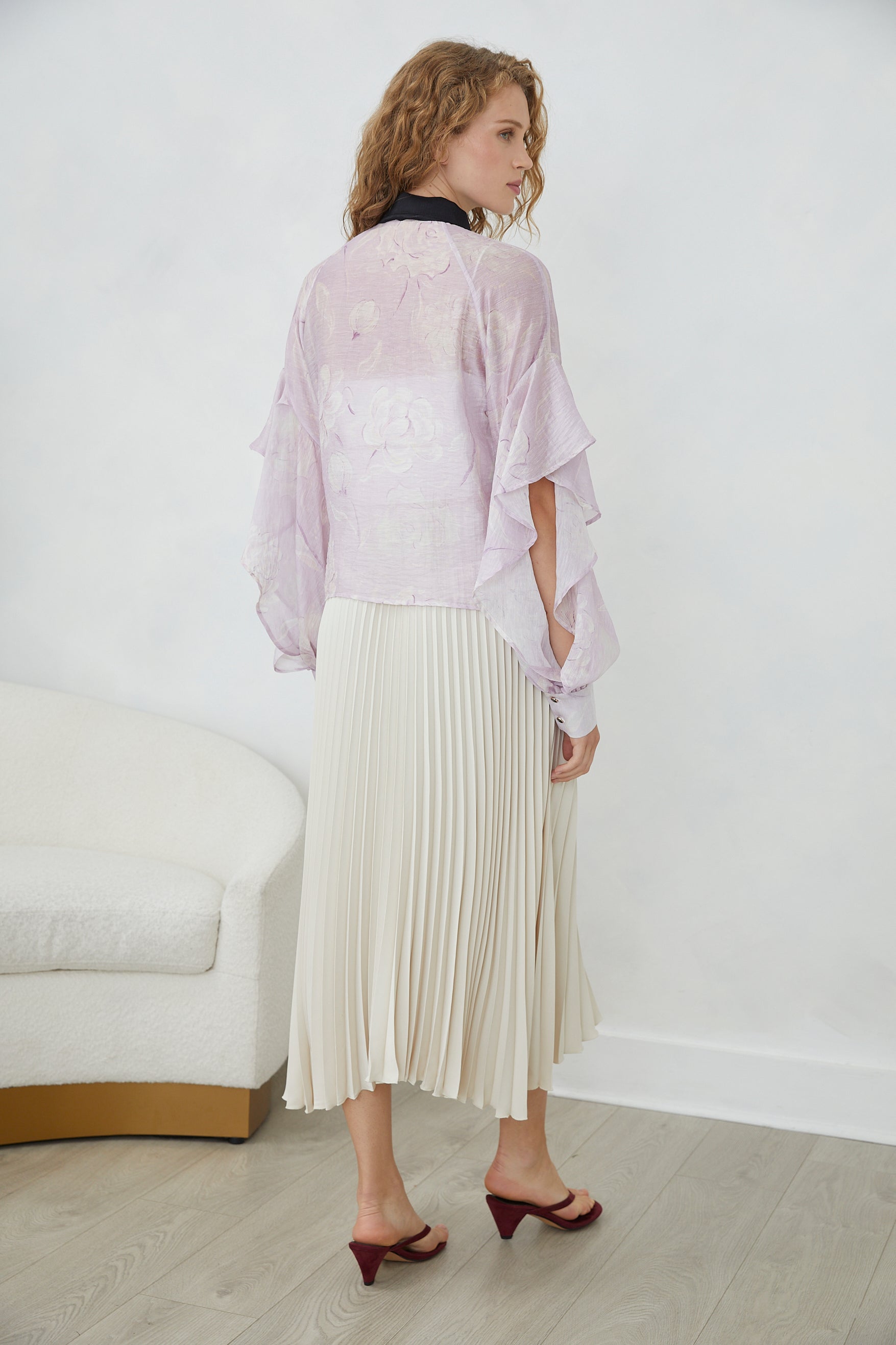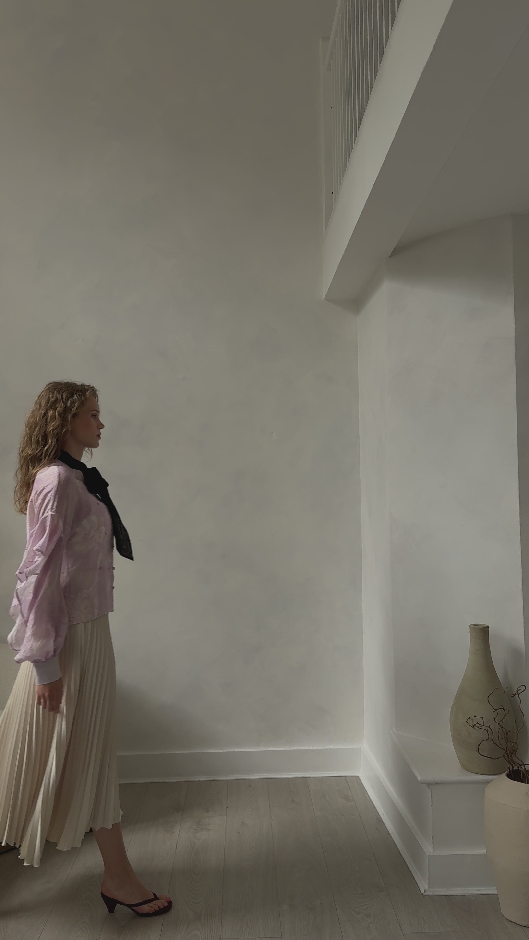 ANSELDE SKIRT An understated midi silhouette defined by fluid pleating and asymmetric proportions. Crafted in a refined cream tone, this piece balances structure with movement, offering a contemporary take on tailored elegance. The asymmetric cut creates visual intrigue whilst the pleated detailing ensures graceful drape. A versatile investment for elevated everyday wear and occasion dressing alike.